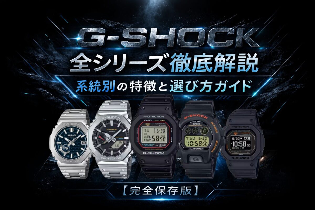 コラム G-SHOCK全シリーズ徹底解説|系統別の特徴と選び方ガイド【完全保存版】 「G-SHOCKはどれを選べばいい?」そんな疑問に愛好家が本音で答えます。定番の5600系から、メタル、ハイエンドのMR-Gまで主要7系統を徹底比較。加水分解という現実にも触れながら、後悔しない一本の選び方を正直に解説した【完全保存版】ガイドです。 2026.01.21 コラム